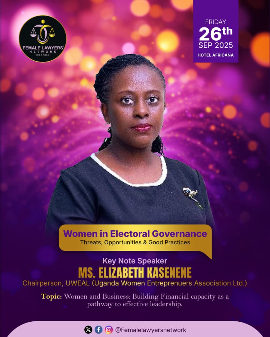 TOPIC : WOMEN IN ELECTORAL GOVERNANCE, HAPPENING AT HOTEL AFRICANA ON THE 26TH OF SEPTEMBER 2025